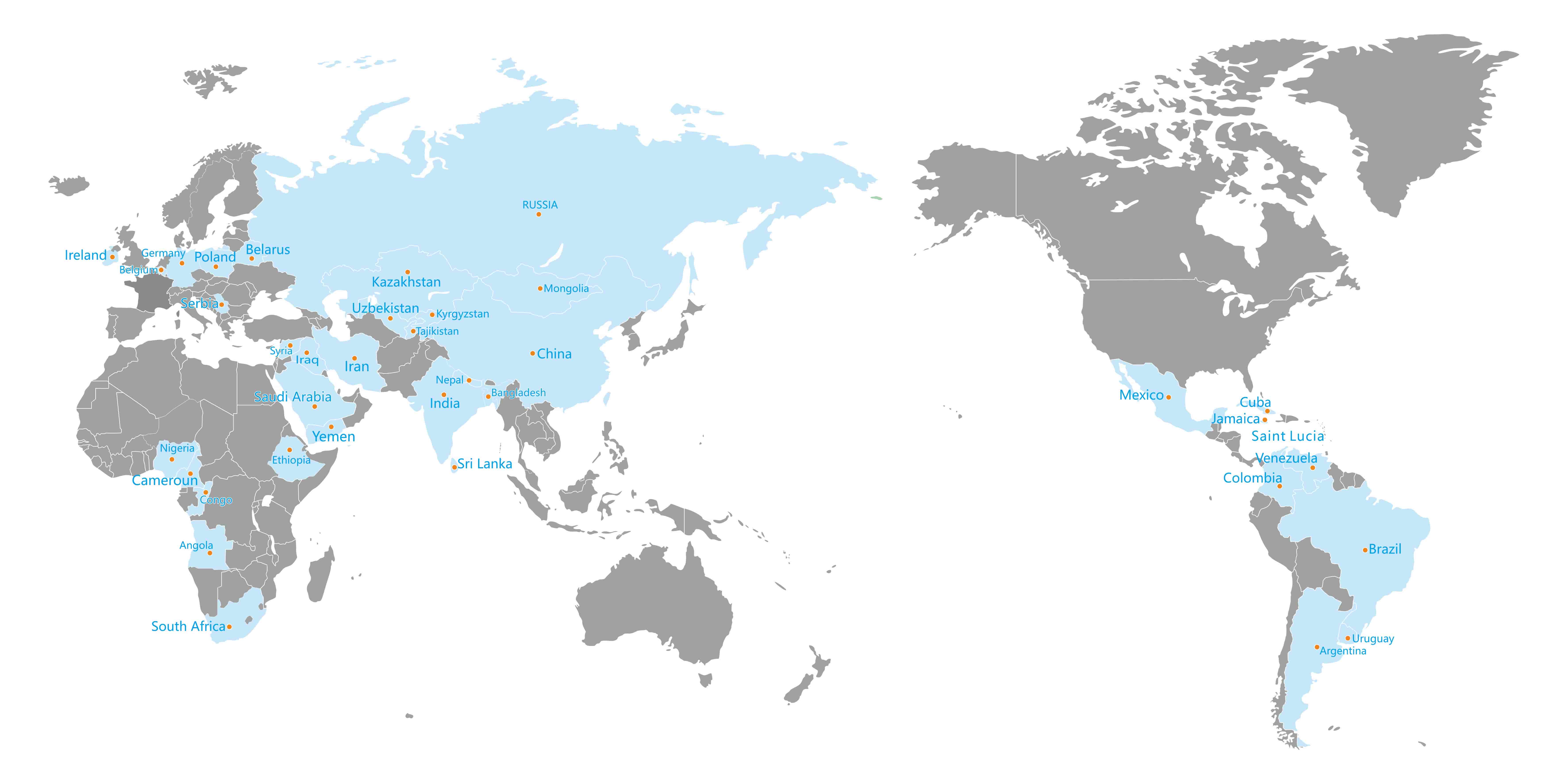включая Россию, Индия, Камерун, Конго, Южная Африка, Бангладеш, Нигерия, Мексика, Таджикистан, Казахстан, Узбекистан и т. д.,